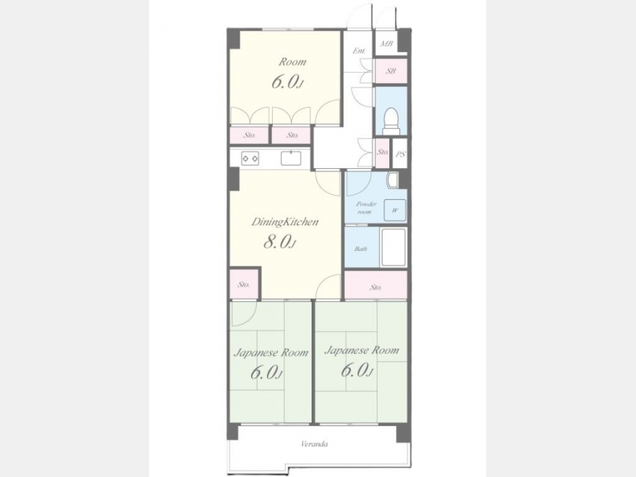 洋室 6 畳 1 室 和室 6 畳 2 室 DK 8 畳 1 室 |