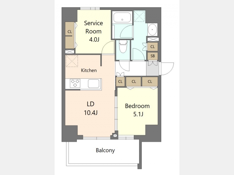 洋室 5.1 畳 1 室 LDK 10.4 畳 1 室 S 4 畳 1 室 |