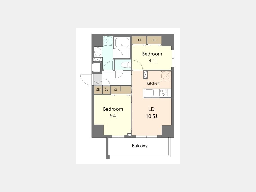 LD 10.5 畳 1 室 洋室 6.4 畳 1 室 洋室 4.1 畳 1 室 |
