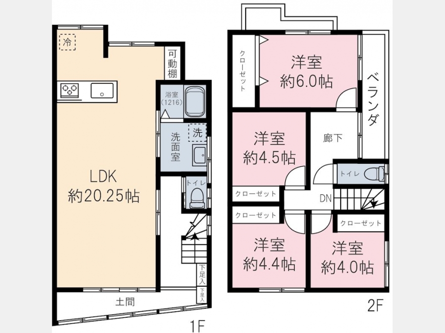 LDK 20.2 畳 1 階 1 室 洋室 6 畳 2 階 1 室 洋室 4.5 畳 2 階 1 室 洋室 4.4 畳 2 階 1 室 洋室 4 畳 2 階 1 室 |