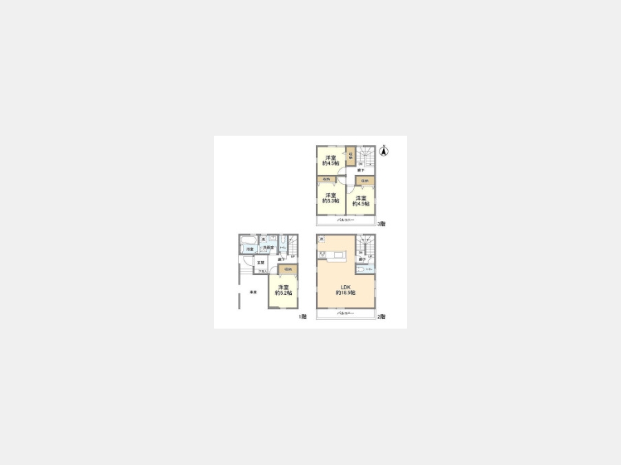 LDK 18.5 畳 洋室 5.3 畳 洋室 5.2 畳 洋室 4.5 畳 洋室 4.5 畳 |