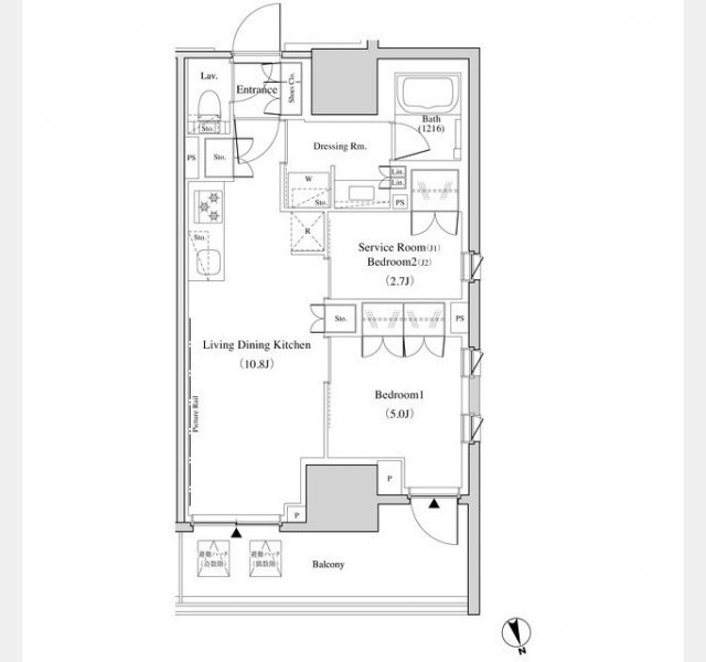 LDK 10.8 畳 1 室 洋室 5 畳 1 室 洋室 2.7 畳 1 室 |