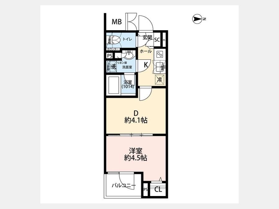 洋室 4.5 畳 1 室 D 4.1 畳 1 室 K 1 室 |