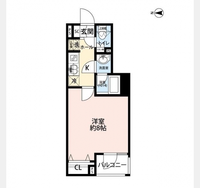 洋室 8 畳 1 室 K 1 室 |
