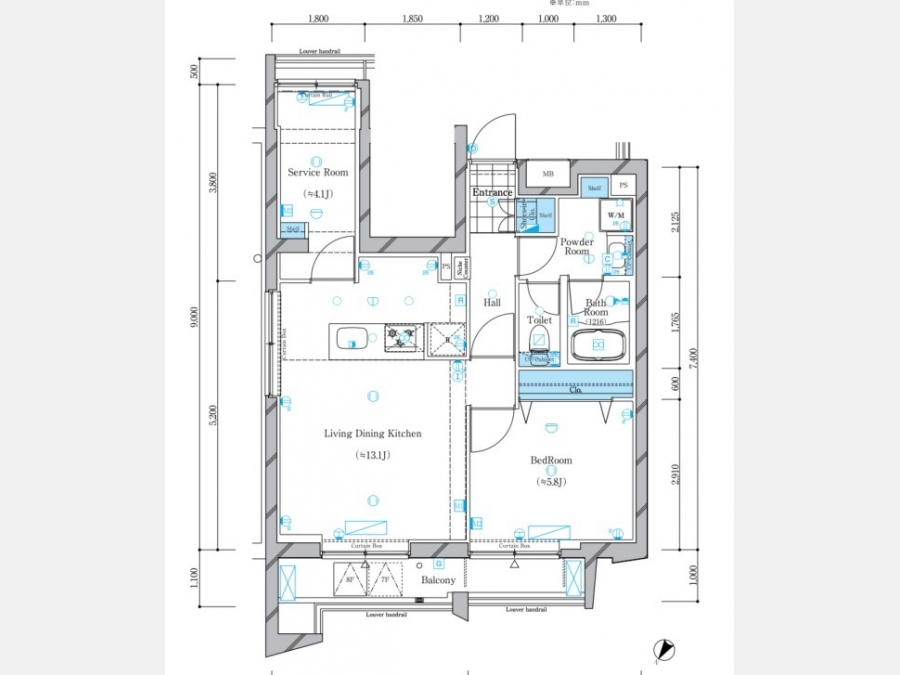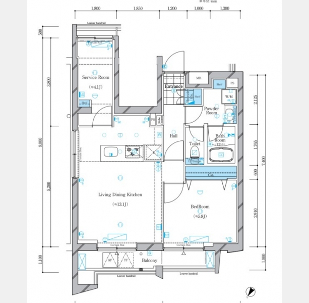洋室 5.8 畳 LDK 13.1 畳 S 4.1 畳 |