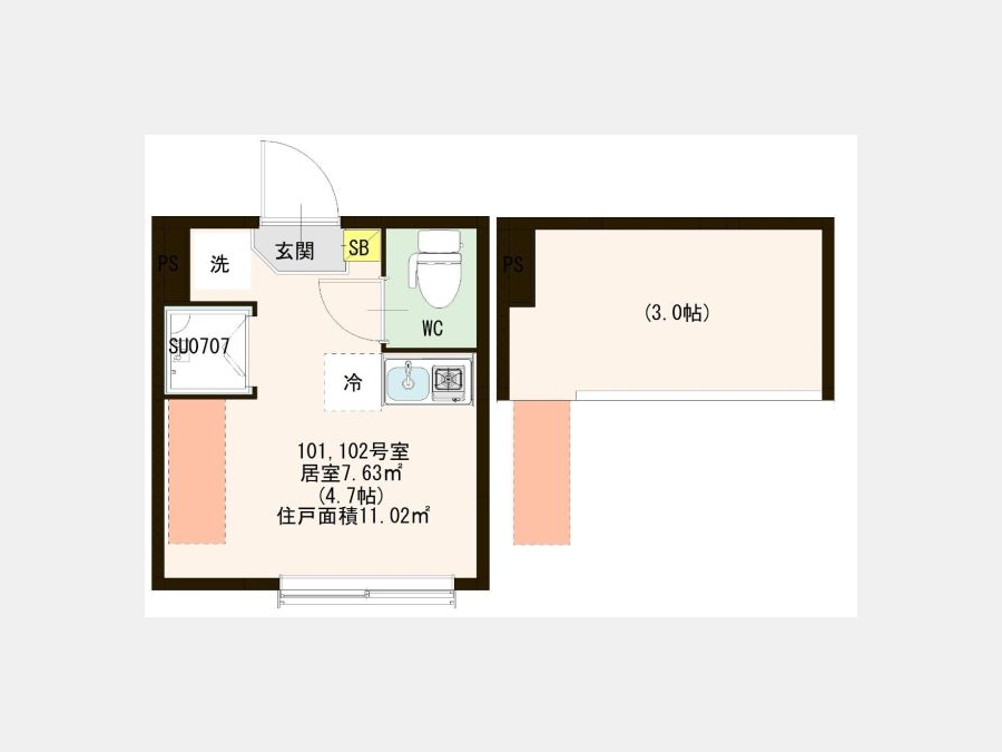 | 専有面積 | 11.02m² | バルコニー面積 | |