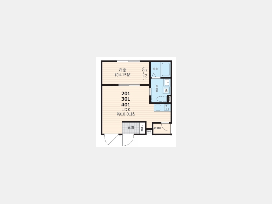 洋室 4.1 畳 1 室 LDK 10 畳 1 室 |