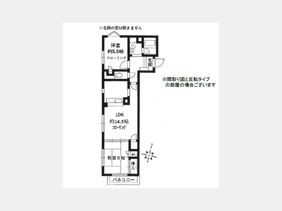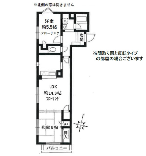 LDK 14.3 畳 洋室 5.5 畳 和室 6 畳 |