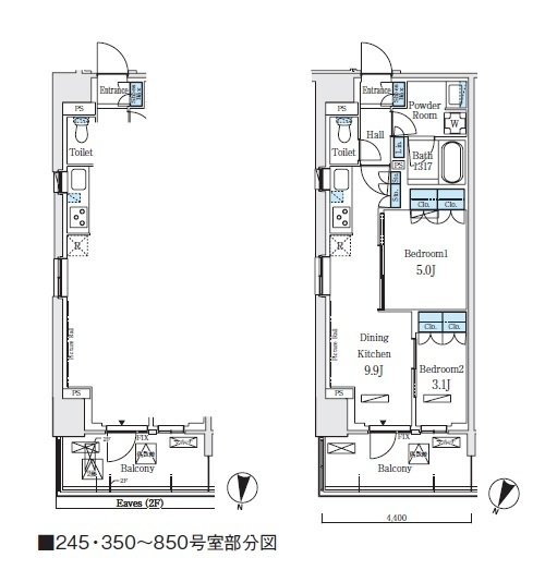 DK 9.9 畳 洋室 5 畳 洋室 3.1 畳 |