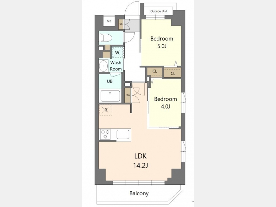 LDK 14.2 畳 洋室 5 畳 洋室 4 畳 |
