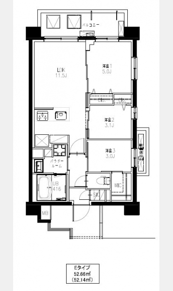 LDK 11.5 畳 洋室 5 畳 洋室 3.1 畳 洋室 3 畳 |