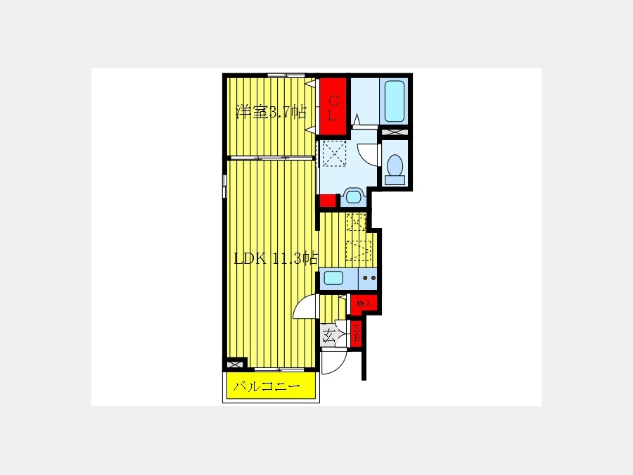 洋室 3.7 畳 LDK 11.3 畳 |