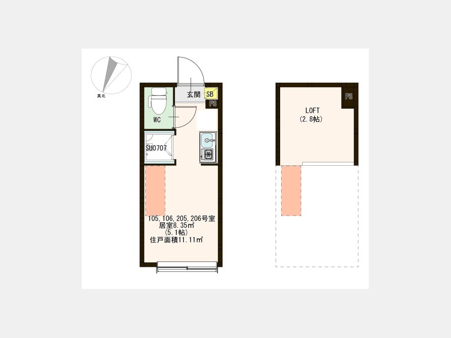 | 敷金/礼金 | なし / なし | 専有面積 | 11.11m² |