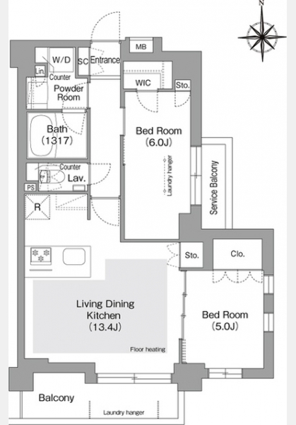 LDK 13.4 畳 1 室 洋室 6 畳 1 室 洋室 5 畳 1 室 |