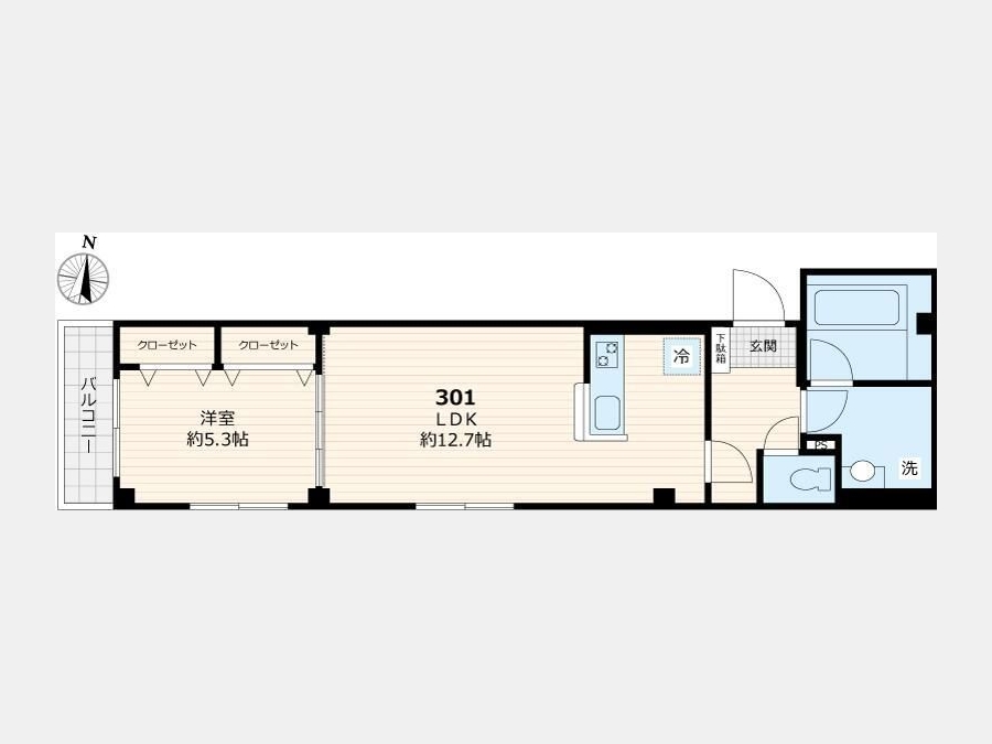 LDK 12.7 畳 1 室 洋室 5.3 畳 1 室 |