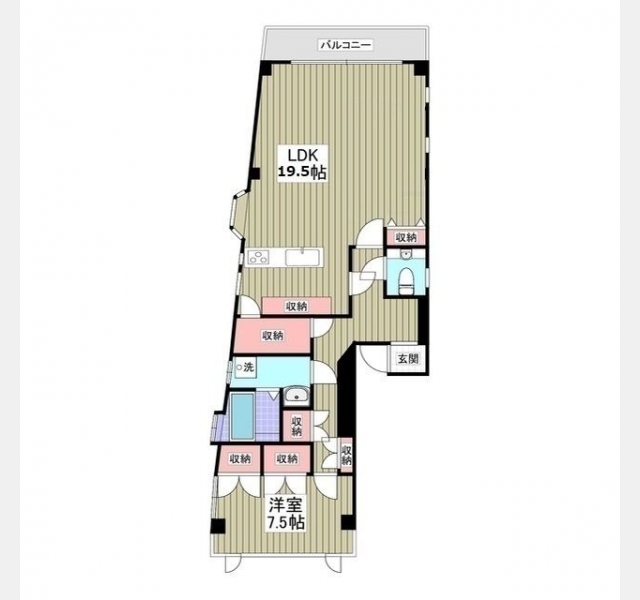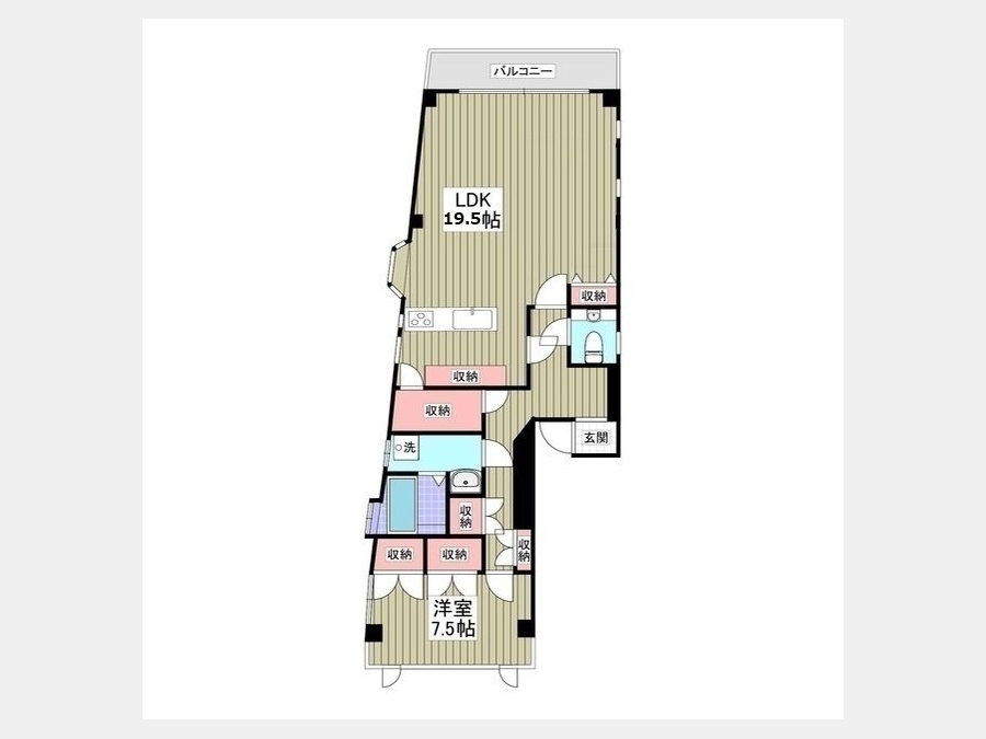 LDK 19.5 畳 1 室 洋室 7.5 畳 1 室 |