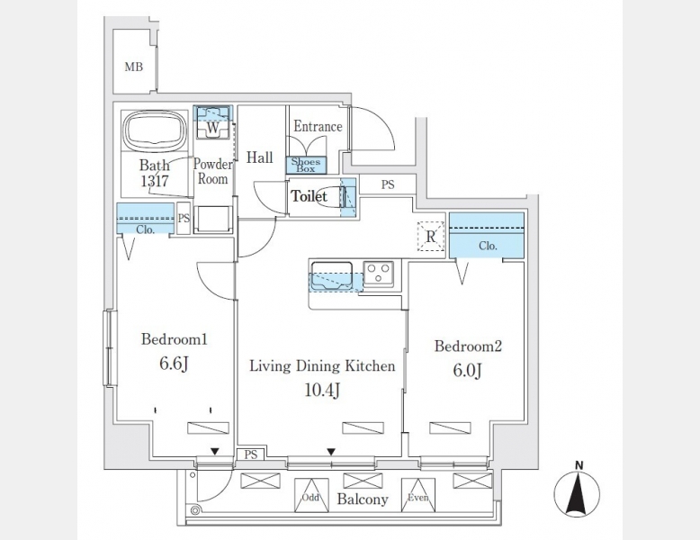 洋室 6.6 畳 洋室 6 畳 LDK 10.4 畳 |