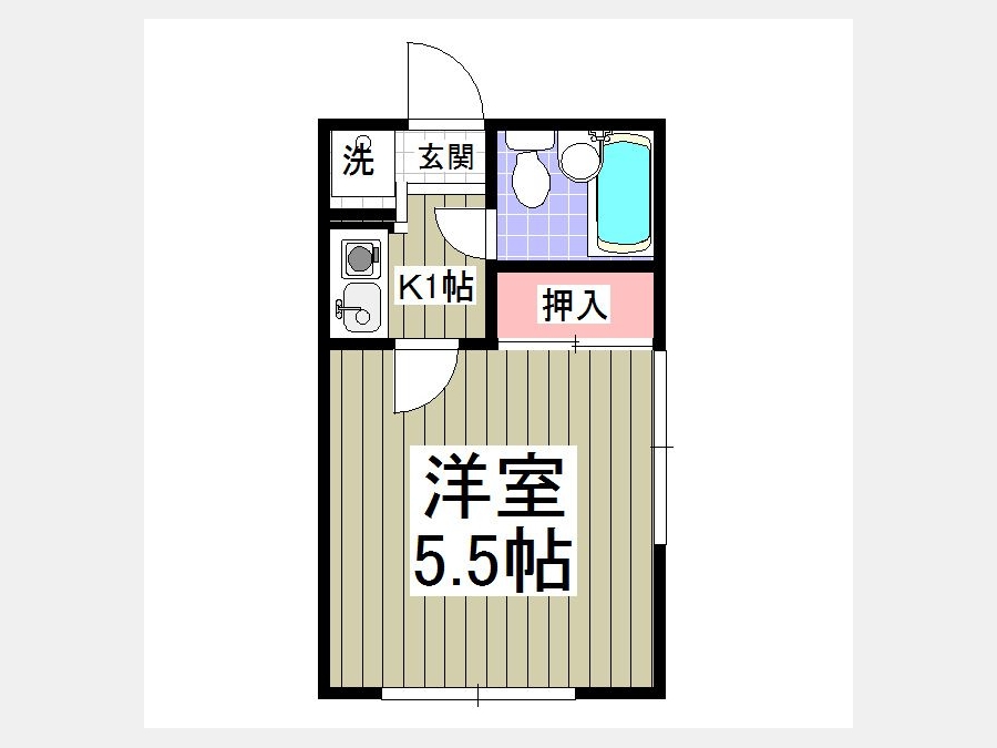 洋室 5.5 畳 1 室 K 1 畳 1 室 |