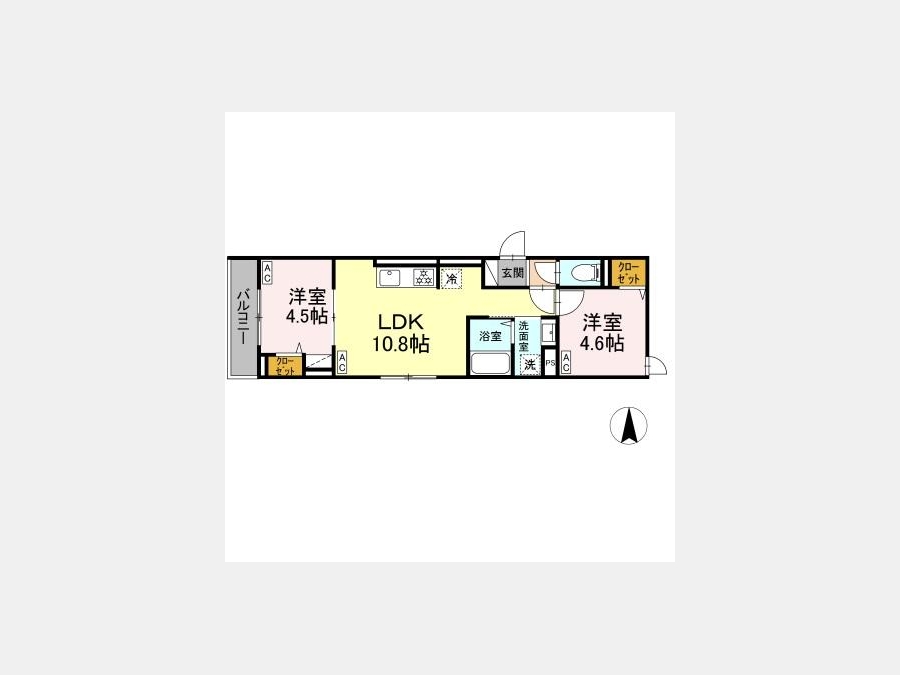 LDK 10.8 畳 洋室 4.6 畳 洋室 4.5 畳 |