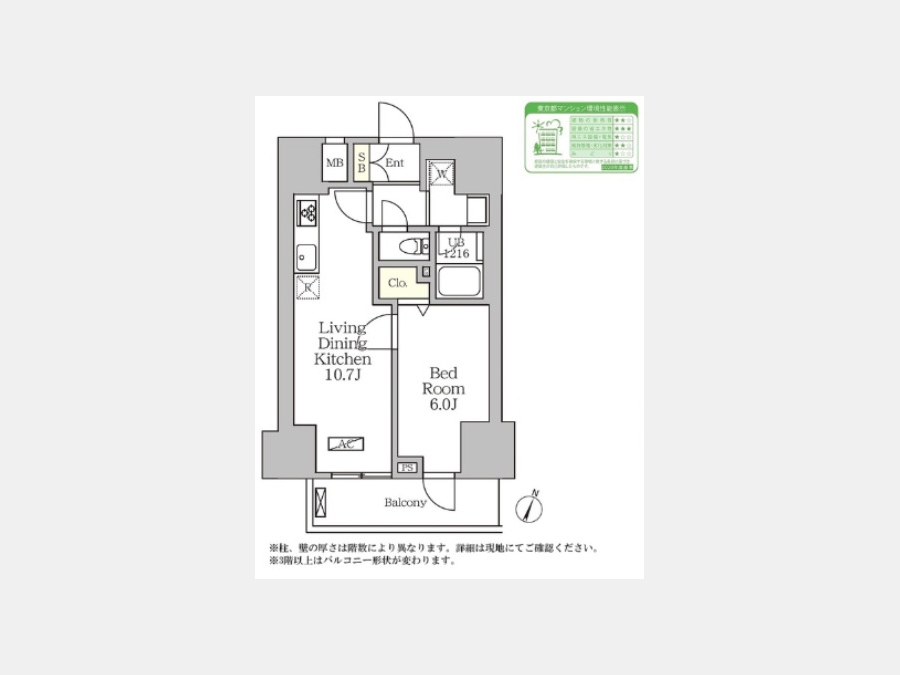 洋室 6 畳 1 室 LDK 10.7 畳 1 室 |