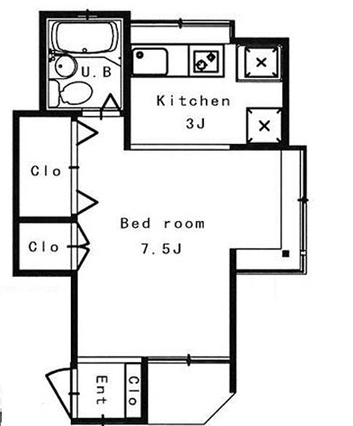 K 3 畳 1 室 洋室 7.5 畳 1 室 |