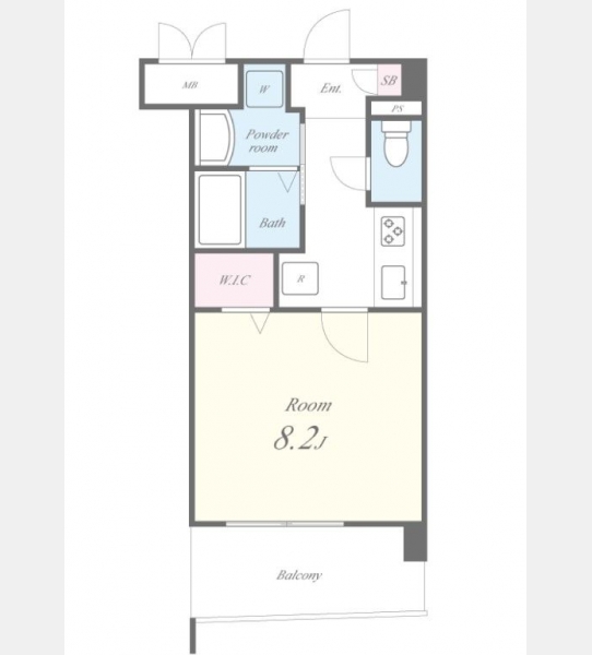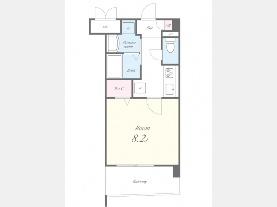 洋室 8.2 畳 1 室 K 1 室 |