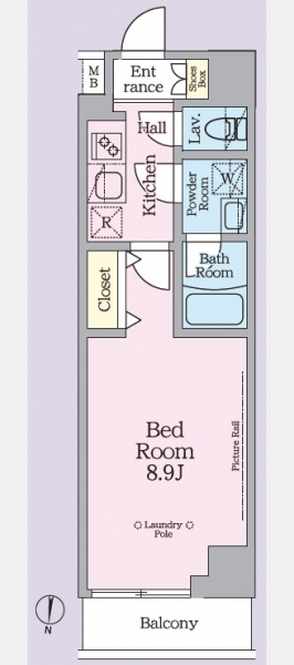 洋室 8.9 畳 1 室 K 1 室 |