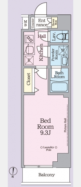 洋室 9.3 畳 1 室 K 1 室 |