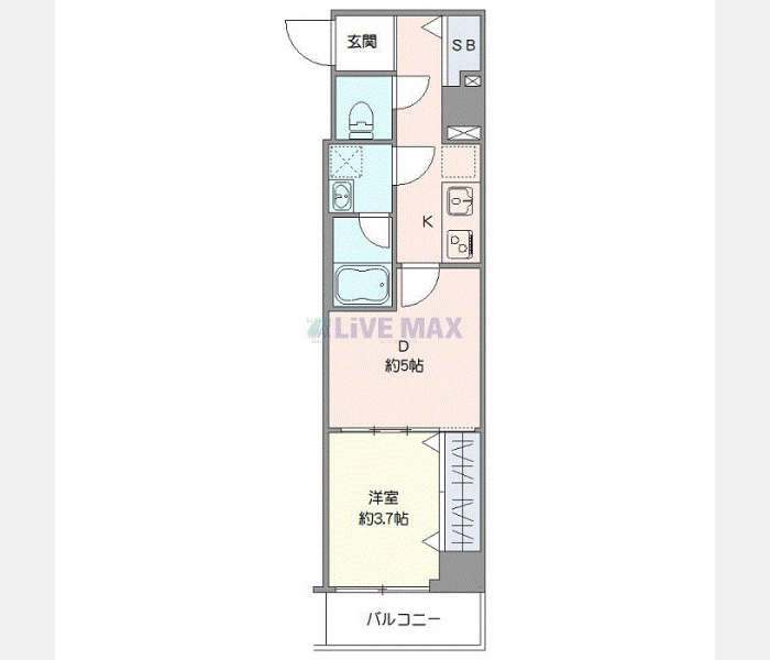 洋室 3.7 畳 1 室 D 5 畳 1 室 K 1 室 |