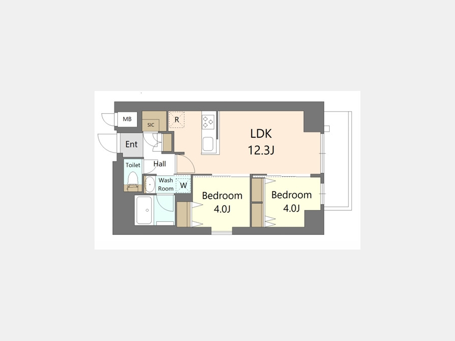 LDK 12.3 畳 洋室 4 畳 洋室 4 畳 |