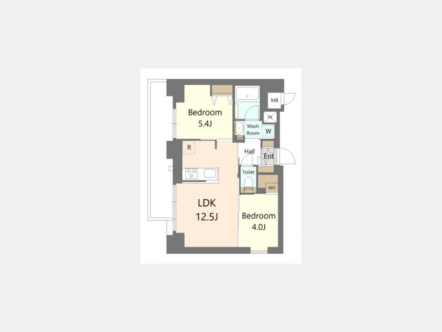 LDK 12.5 畳 洋室 5.4 畳 洋室 4 畳 |