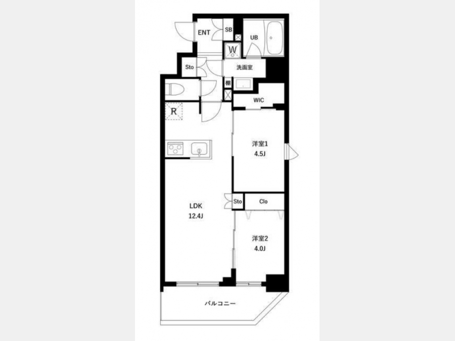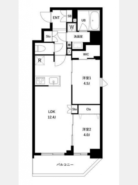 LDK 12.4 畳 洋室 4.5 畳 洋室 4 畳 |