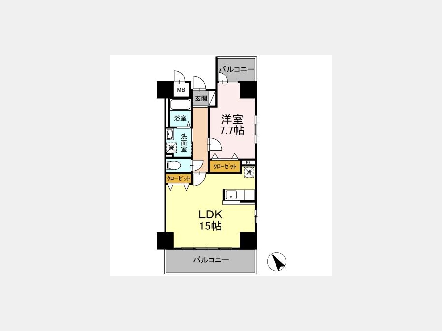 洋室 7.7 畳 1 室 LDK 15 畳 1 室 |