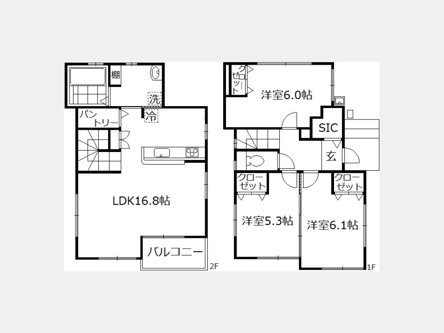 LDK 16.8 畳 2 階 1 室 洋室 6.1 畳 1 階 1 室 洋室 6 畳 1 階 1 室 洋室 5.3 畳 1 階 1 室 |