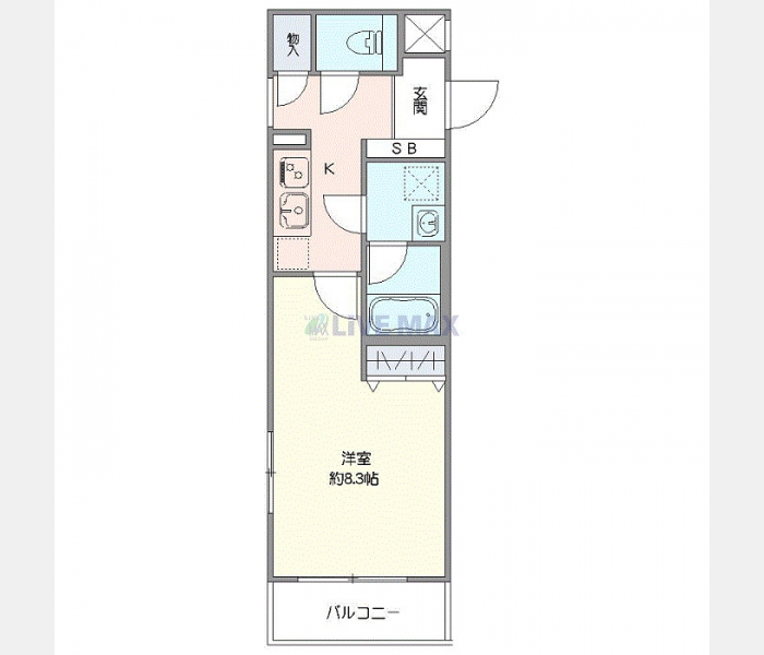 洋室 8.3 畳 1 室 K 1 室 |