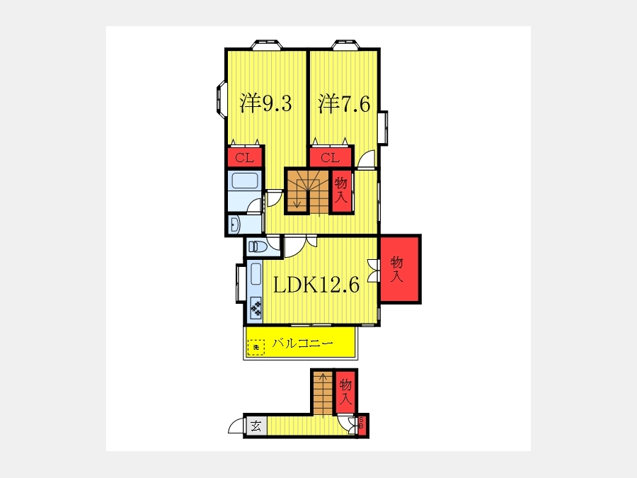 洋室 9.3 畳 1 室 洋室 7.6 畳 1 室 LDK 12.6 畳 1 室 |