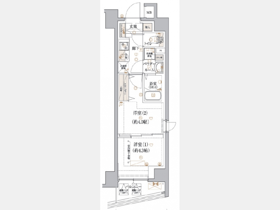 洋室 4.3 畳 1 室 洋室 4 畳 1 室 K 1 室 |