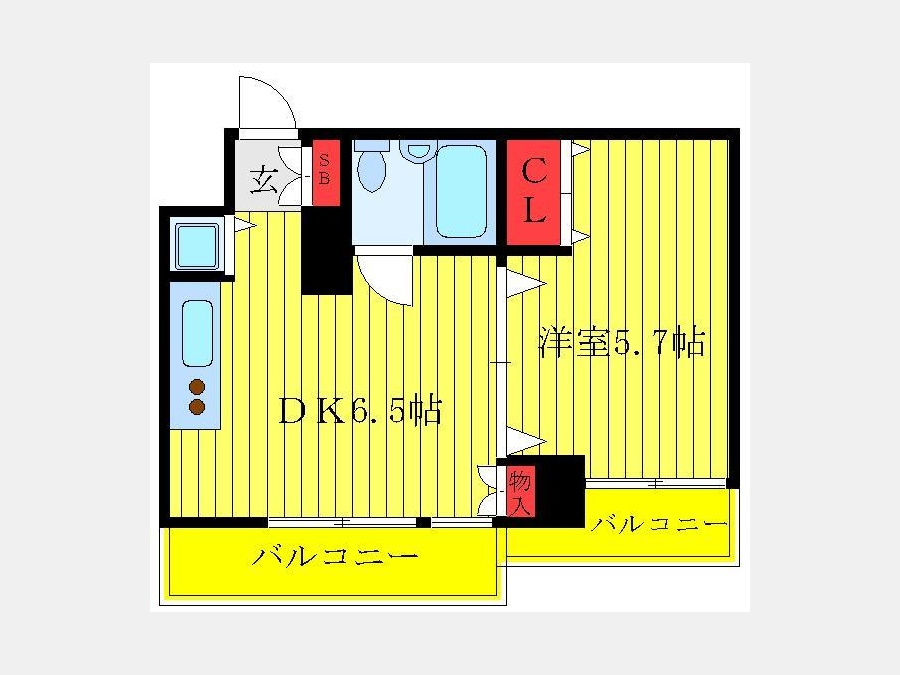 洋室 5.7 畳 1 室 DK 6.5 畳 1 室 |