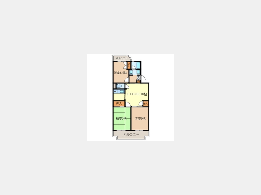 和室 6 畳 洋室 6 畳 洋室 4.5 畳 LDK 10.1 畳 |