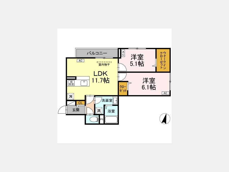 LDK 11.7 畳 洋室 6.1 畳 洋室 5.1 畳 |