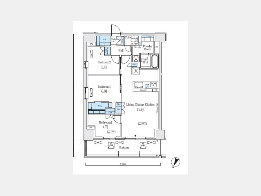 LDK 17.9 畳 洋室 5.4 畳 洋室 6 畳 洋室 4.7 畳 |