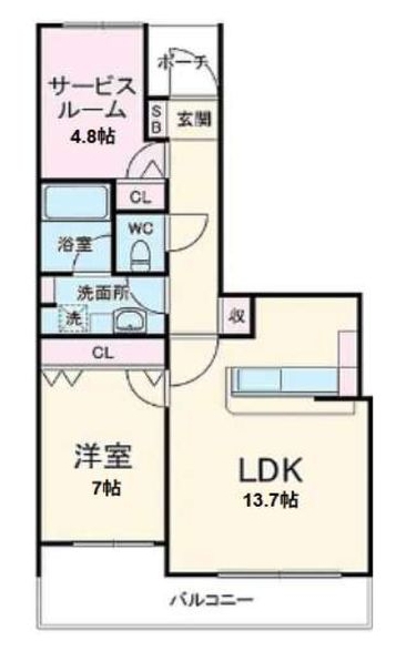 LDK 13.7 畳 洋室 7 畳 S 4.8 畳 |
