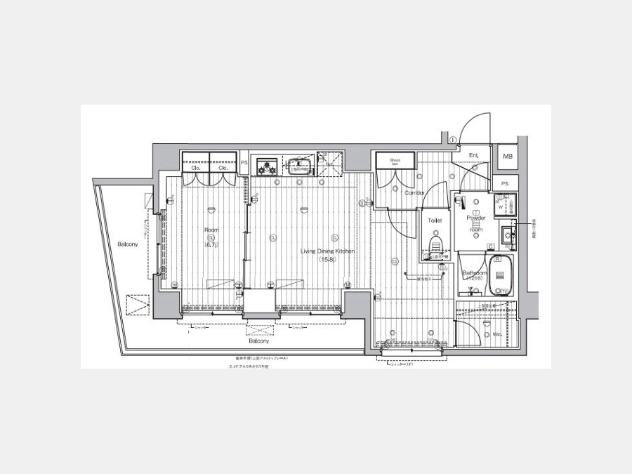 LDK 15.8 畳 洋室 6.7 畳 |
