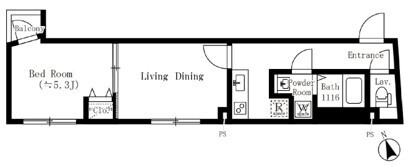 洋室 5.3 畳 1 室 LD 1 室 K 1 室 |