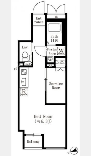 S 1 室 洋室 6.3 畳 1 室 |