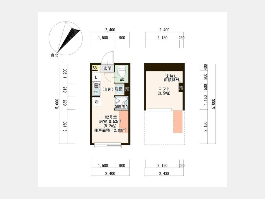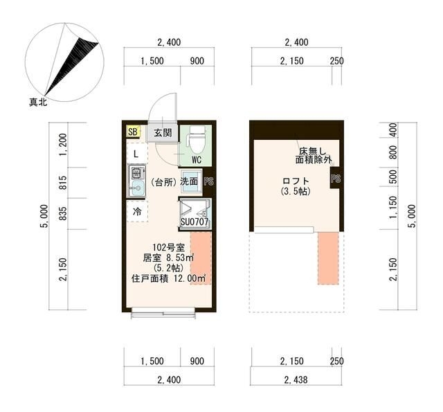 洋室 5.2 畳 ロフト3.5帖 |