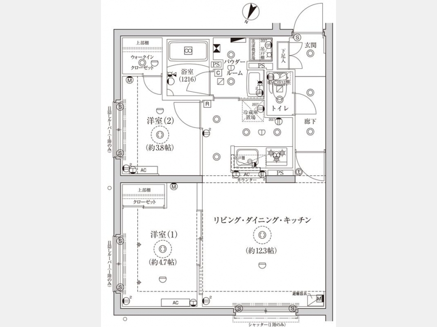 LDK 12.3 畳 洋室 4.7 畳 洋室 3.8 畳 |