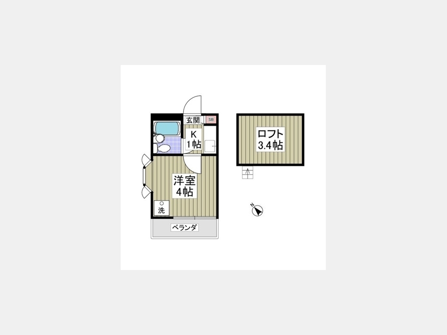 洋室 4 畳 1 室 K 1 畳 1 室 ロフト3.4帖 |
