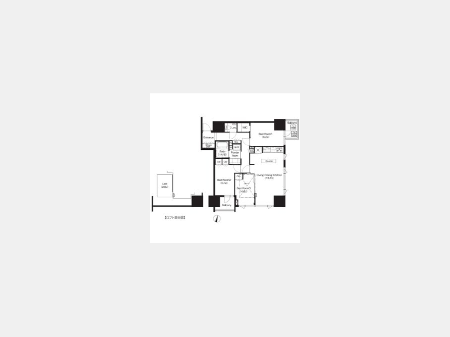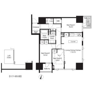 LDK 13.7 畳 洋室 6.2 畳 洋室 5.3 畳 洋室 4.6 畳 ロフト2.6帖 |