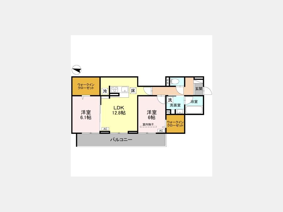 LDK 12.8 畳 洋室 6.1 畳 洋室 6 畳 |